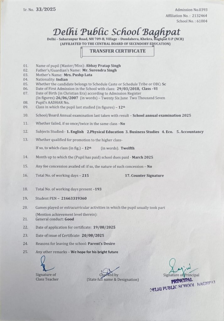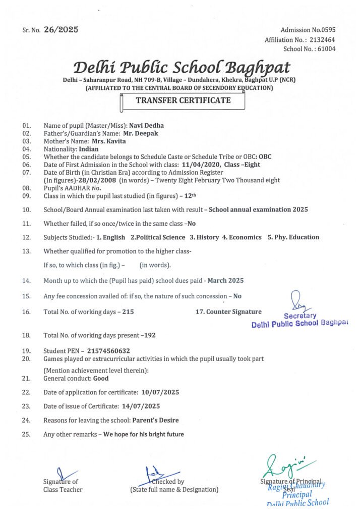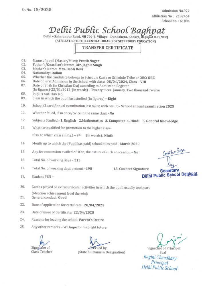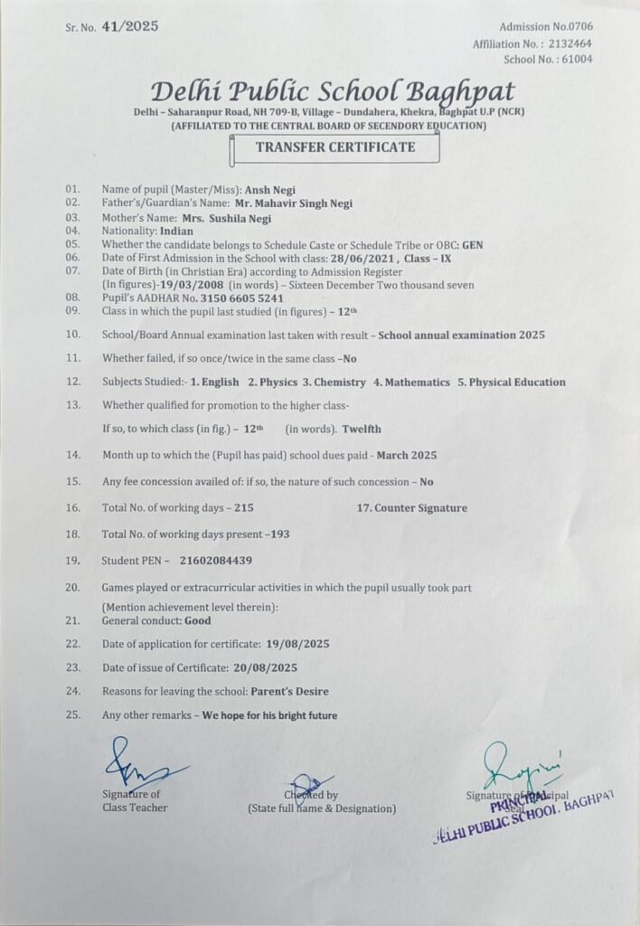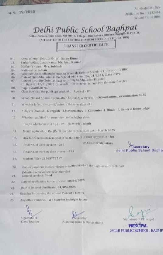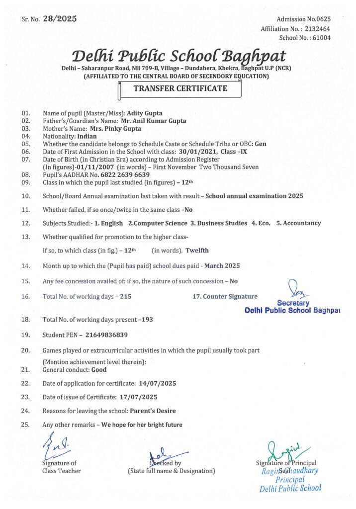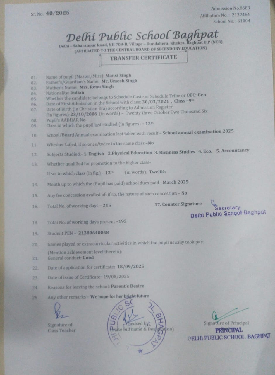 Transfer Certificate