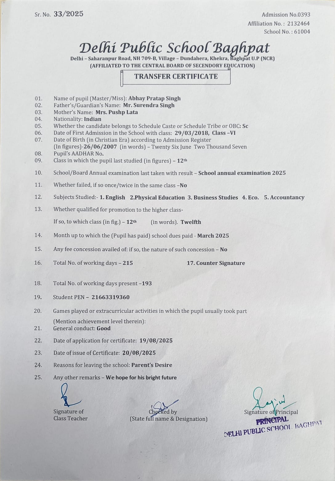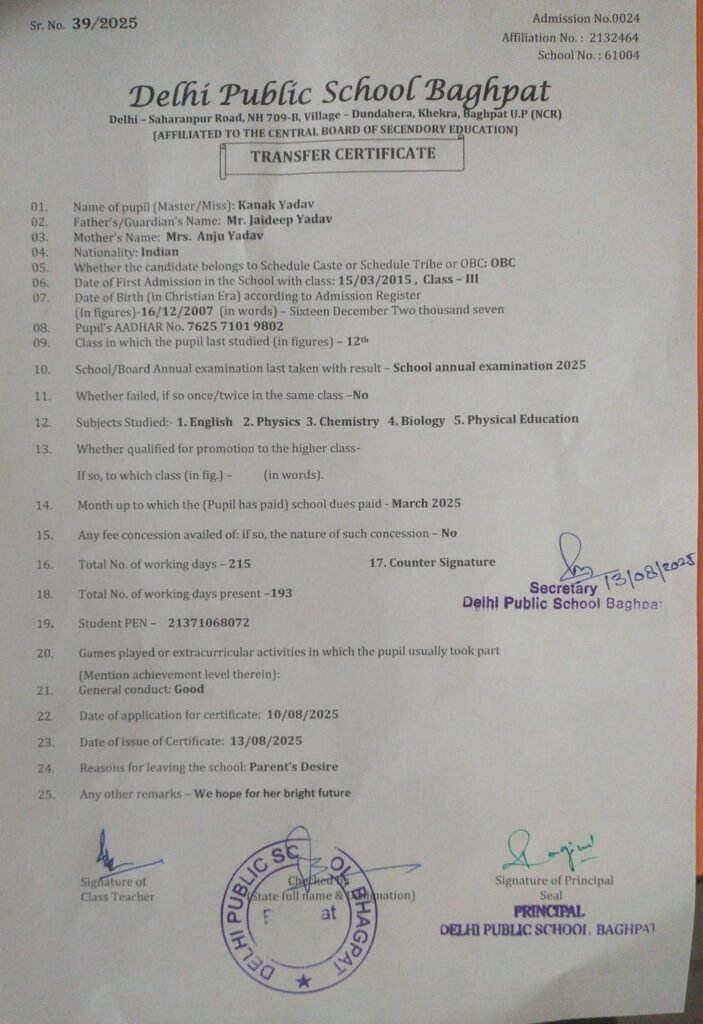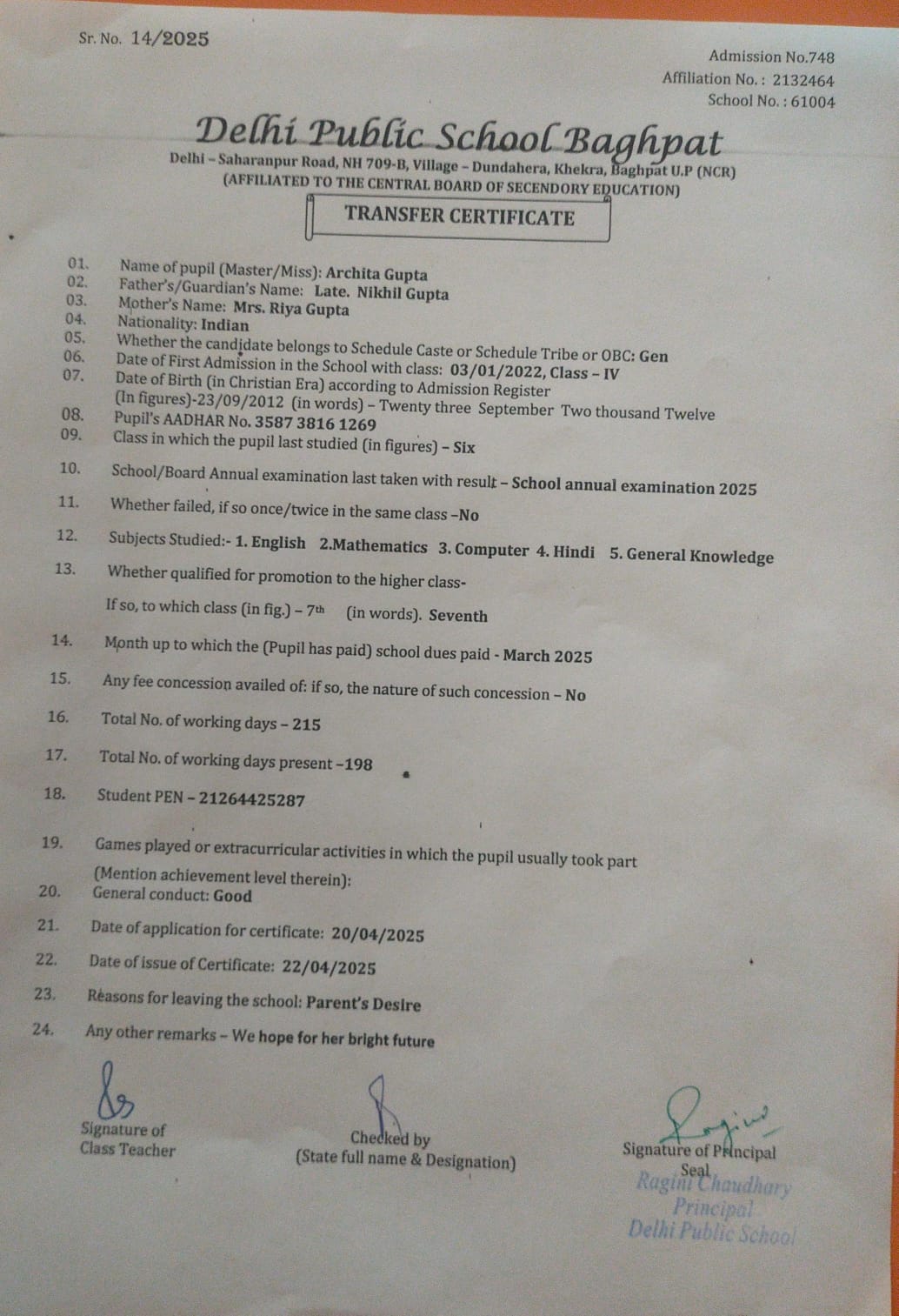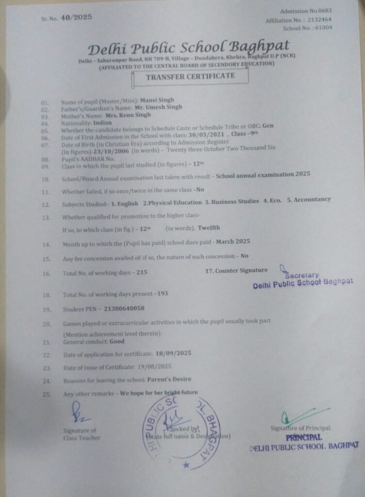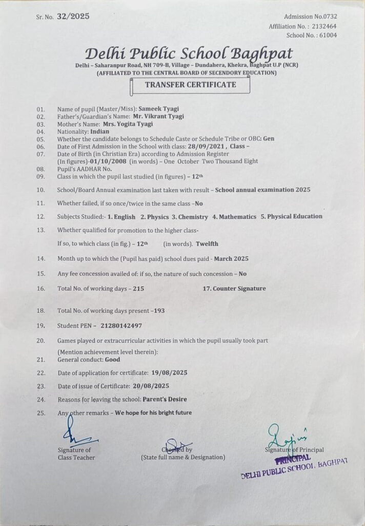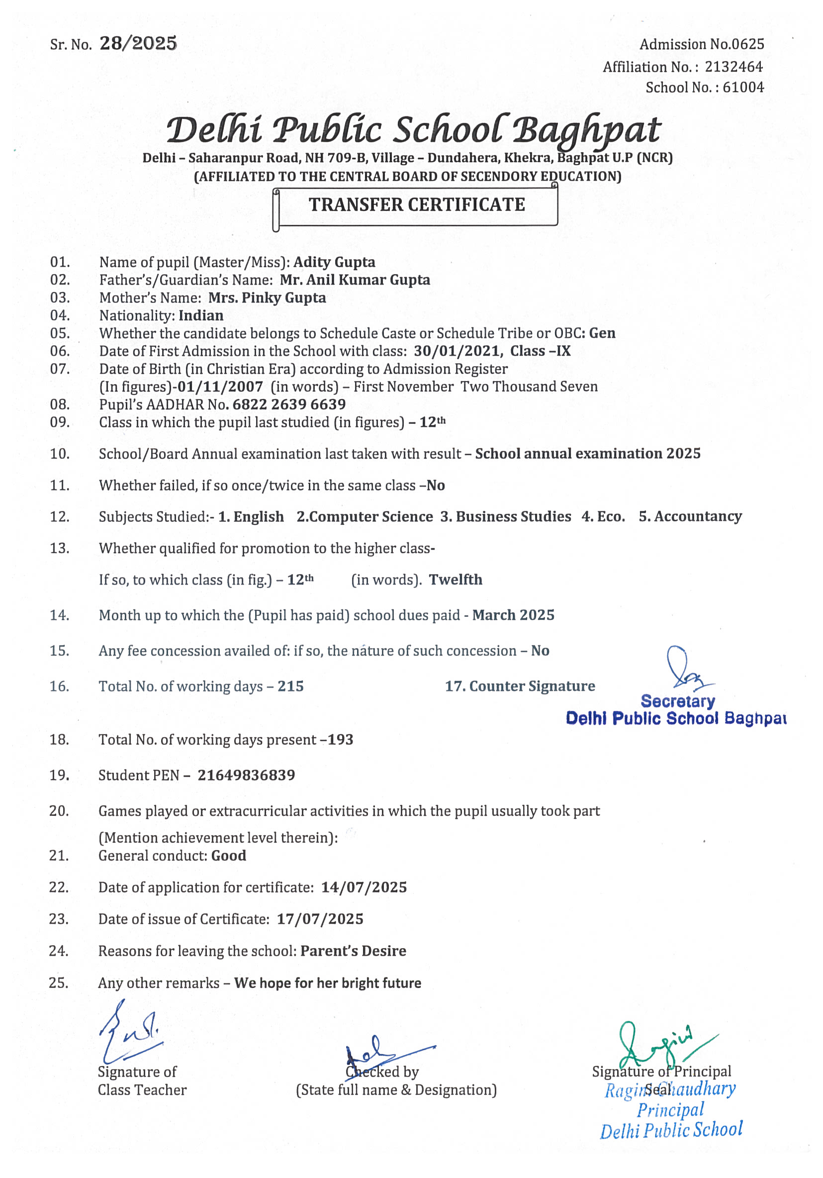 Transfer Certificate